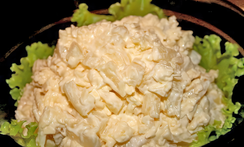 Сочный куриный салат с ананасом готов к подаче. Перед подачей салат можно посыпать зеленью или украсить кольцами свежего огурца. Подавайте салат охлажденным. Приятного аппетита!
